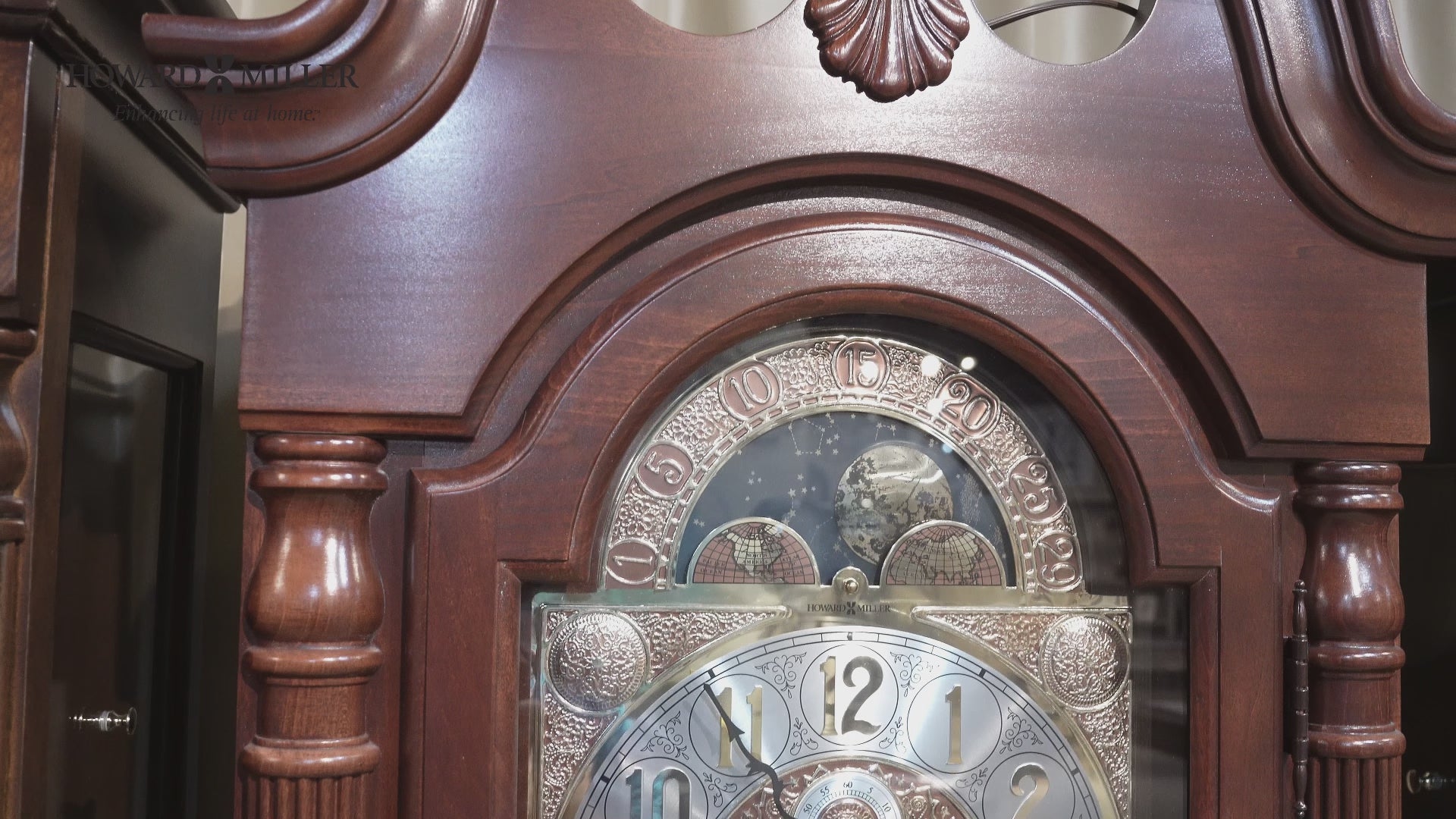 This stunning and traditional wooden grandfather clock delivers all the best of Howard Miller’s detailed craftsmanship.