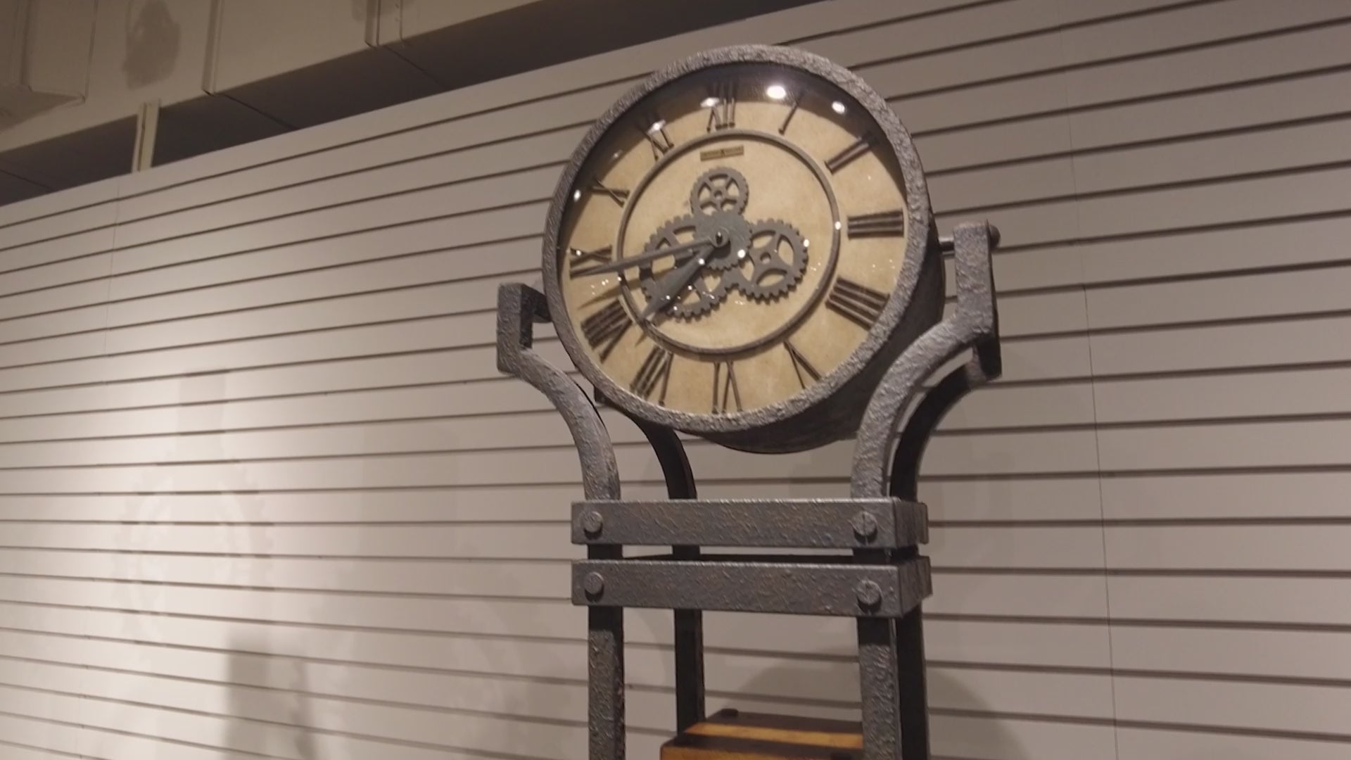 Steampunk Style: Go bold with this grandfather clock, which has a metal frame and aged iron finish for an industrial look. The wooden base is weathered and distressed to impart an aged look, with a cogwheel accent for a realistic finishing touch.