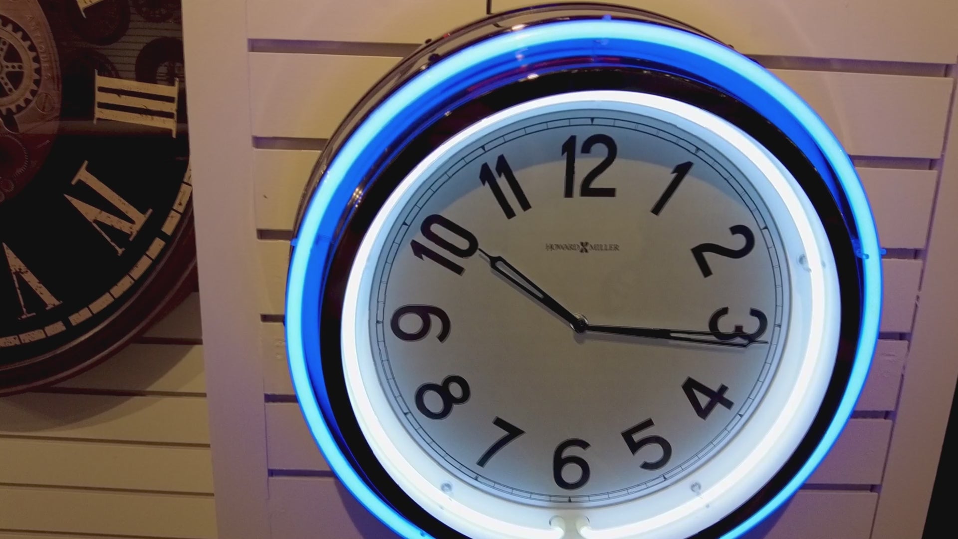 Stealing the Spotlight: If there’s a surefire way to turn attention to a wall, it’s with a metal wall clock bathed in neon. The soft glow comes courtesy of an inner white ring and a blue outer ring, both powered by an included 120V UL Listed adapter. The effect is cool, crisp, and flawless, particularly as they shine against the bright white dial in the center. It’s adorned with black Arabic numerals and black finished hands behind a flat glass crystal.